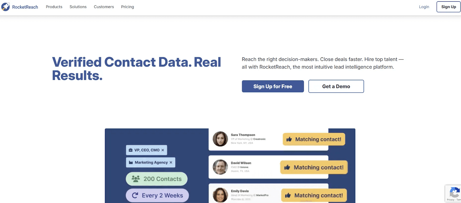 RocketReach is a massive global database that excels where others fall short, particularly in senior leadership. While ContactOut is great for a quick LinkedIn lookup, RocketReach is the tool you use when the data is hard to find. It has a high success rate in surfacing personal email addresses, which can be key to reaching a busy decision-maker.