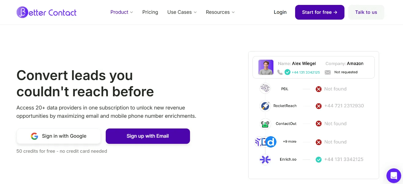 Best For: Recruiters and sales teams who need to find the phone numbers and personal emails that single-source databases miss.