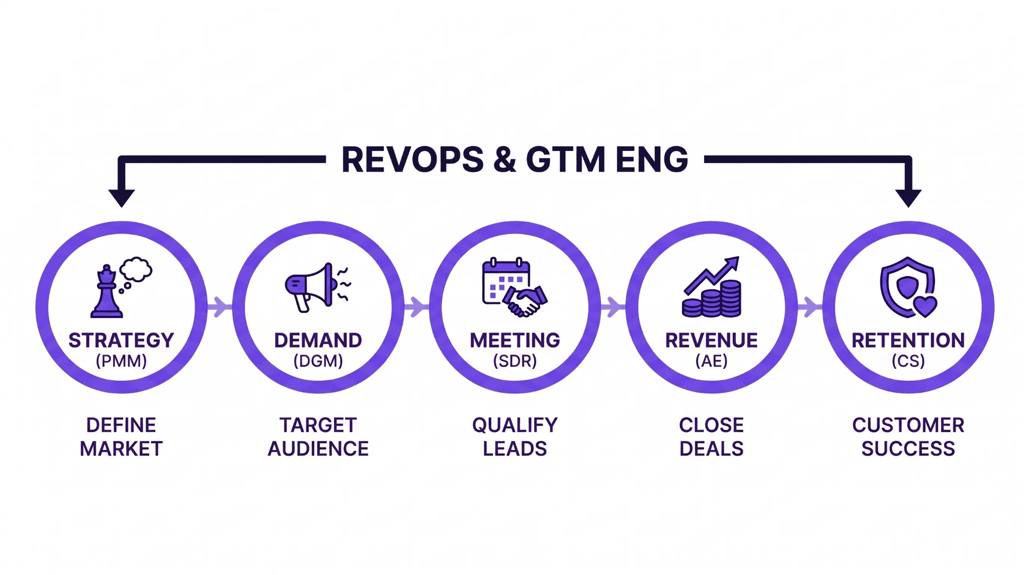 Understanding each role individually is not the same as understanding how the system operates. The most common GTM failures happen at the handoffs between roles, not within any single function. Here is what a healthy GTM system looks like working end to end.
