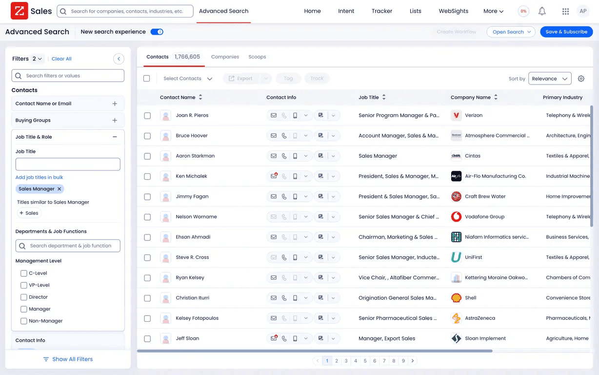 2. ZoomInfo: Best for Enterprise teams who need company-level intelligence alongside contact data
