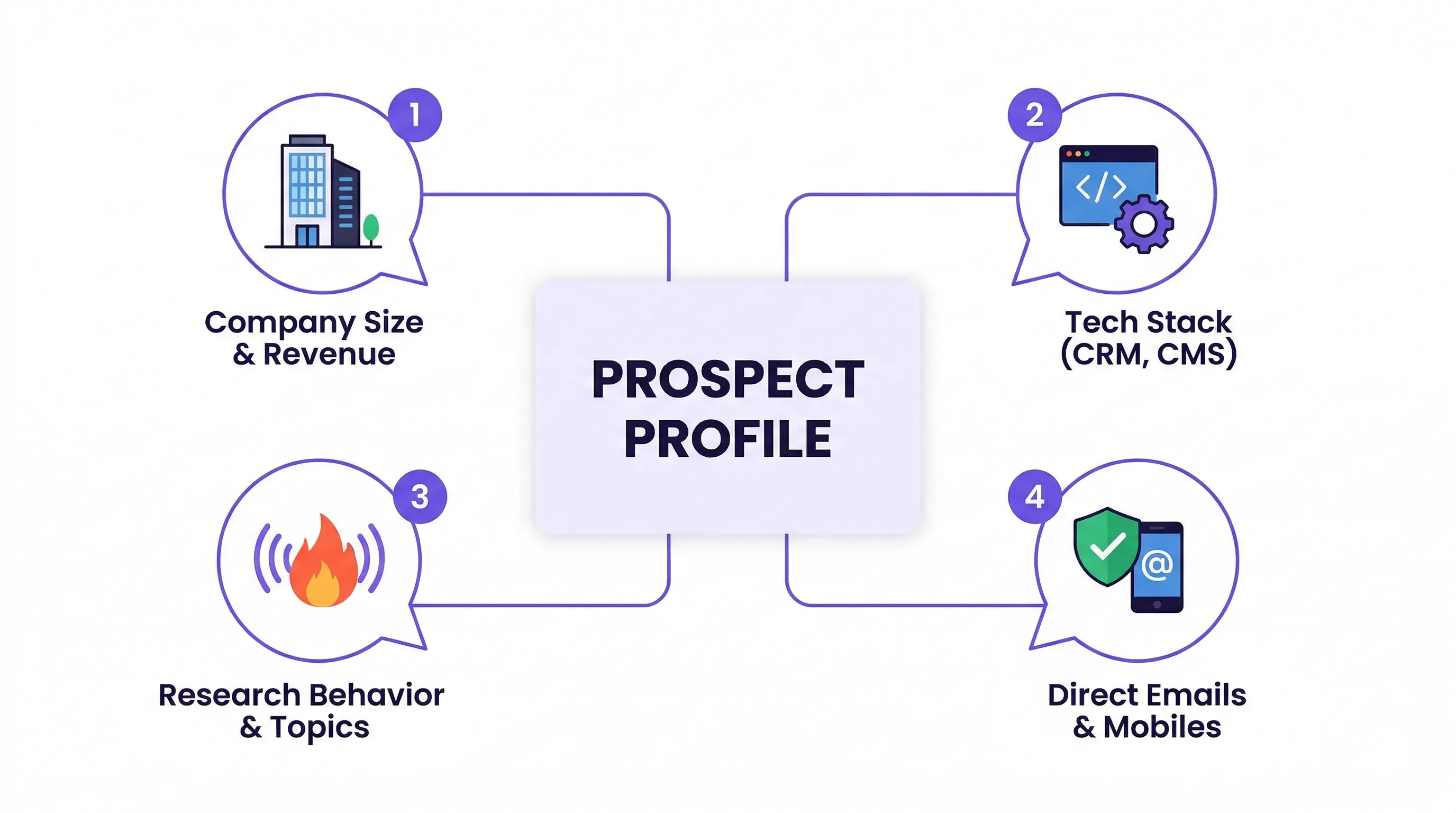 The four levels are contact intelligence (who to reach and how), company intelligence (firmographics, financials, and structure), market intelligence (competitive landscape and industry trends), and behavioral intelligence (intent signals and engagement data showing who is actively in-market). Most sales intelligence tools operate across multiple levels, though they typically specialize in one or two.
